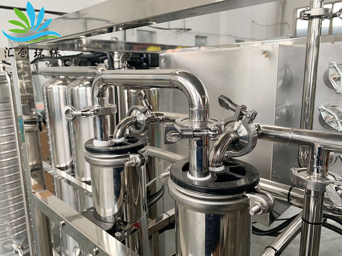 4.2反渗透装置:膜的分离孔径在10-6cm-10-7cm,能除去水中有机物(如三卤甲烷中间体、胶体、悬浮物、微生物、细菌、藻类、霉类等)、热源、病毒等物质,流体经前三级预处理后的水经反渗透RO膜主机深层分离处理后,脱盐率98%,